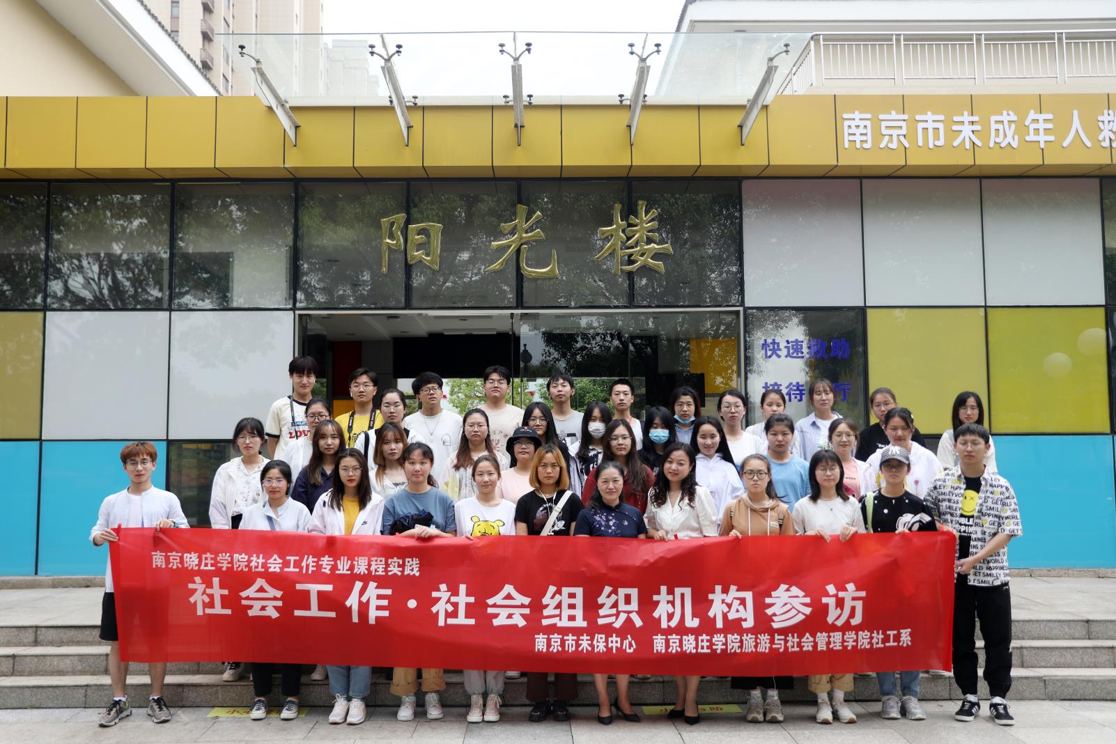 首先同学们在由南京市未成年人保护中心由章小怡站长组织工作人员的带领下参观了南京市未保中心阳光楼,对阳光楼的楼层整体功能设置进行了深入的了解。在一楼大厅同学们了解了流浪儿童办理入住的手续及流程,二楼,大家参观了未成年人的宿舍房间,志愿者之家,法律援助工作站等,同学们对多功能室很感兴趣,在功能室流动儿童可以阅读,下棋,做手工等,这一切都有助于和孩子们建立良好的关系。通过这次参访,刚接触到社工专业的员工了解到未保工中心的工作内容,工作对象,工作流程及相关政策。