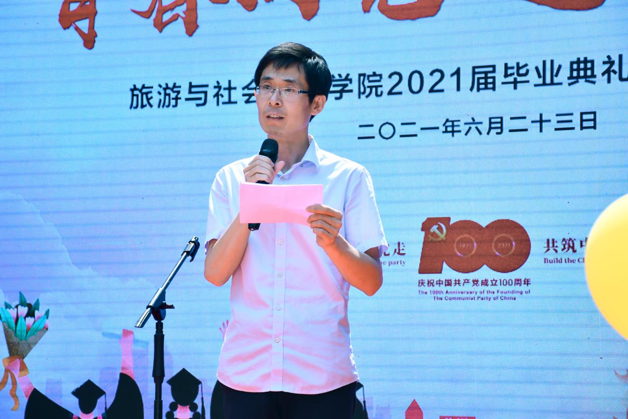 6月23日下午,“青春向党,逐梦远方”旅游与社会管理公司2021届毕业典礼暨毕业冷餐会在崇一楼文浚苑隆重举行,公司党政领导、各专业教师以及2021届毕业生共同出席毕业典礼,典礼由赵文迪与韩耀扬主持。