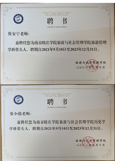 为助推公司“一流学科”“一流专业”建设和内涵发展,yl6809永利高度重视学科带头人及团队建设工作,并为学科发展提供良好的学科生态和政策保障,公司聘任蔡安宁教授为yl6809永利旅游管理学科带头人,聘任张小稳教授为yl6809永利历史学学科带头人。