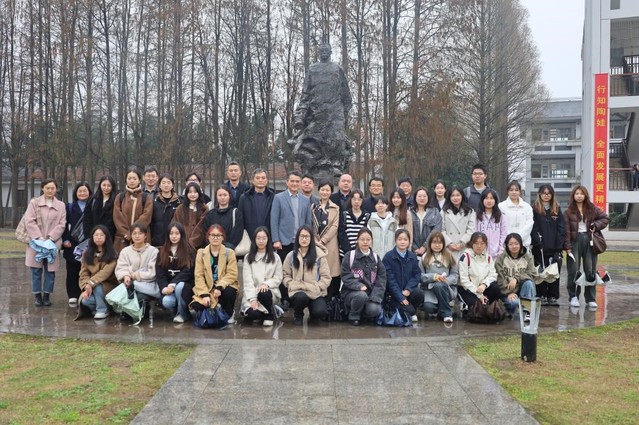 离开王荷波纪念馆,师生列队来到到校园里陶行知先生的塑像前。在塑像前,师生怀着崇敬之情鞠躬、献花。大家在陶像前听优秀员工、全国师德标兵、全国教书育人楷模杨瑞清董事长讲述行知教育集团的发展经历,听杨董事长讲述自己对于陶行知先生教育理念的一生信奉和自己在陶行知先生精神影响下扎根乡村40年的行知教育实践。杨董事长的精神与思想魅力深深感染了在场师生。