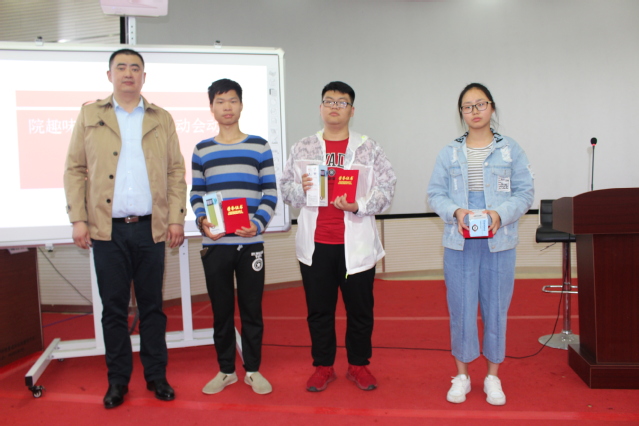 大会开始,由彭佳姝老师宣读院趣味运动会获奖名单,随后谢雷书记为获奖运动员颁发荣誉证书及奖品。胡洁、王海博、王美玲、王孟词等获奖运动员代表上台领奖。同样恭喜17级旅游管理(单招)班级荣获团体第二名以及其他班级分别荣获其他名次。